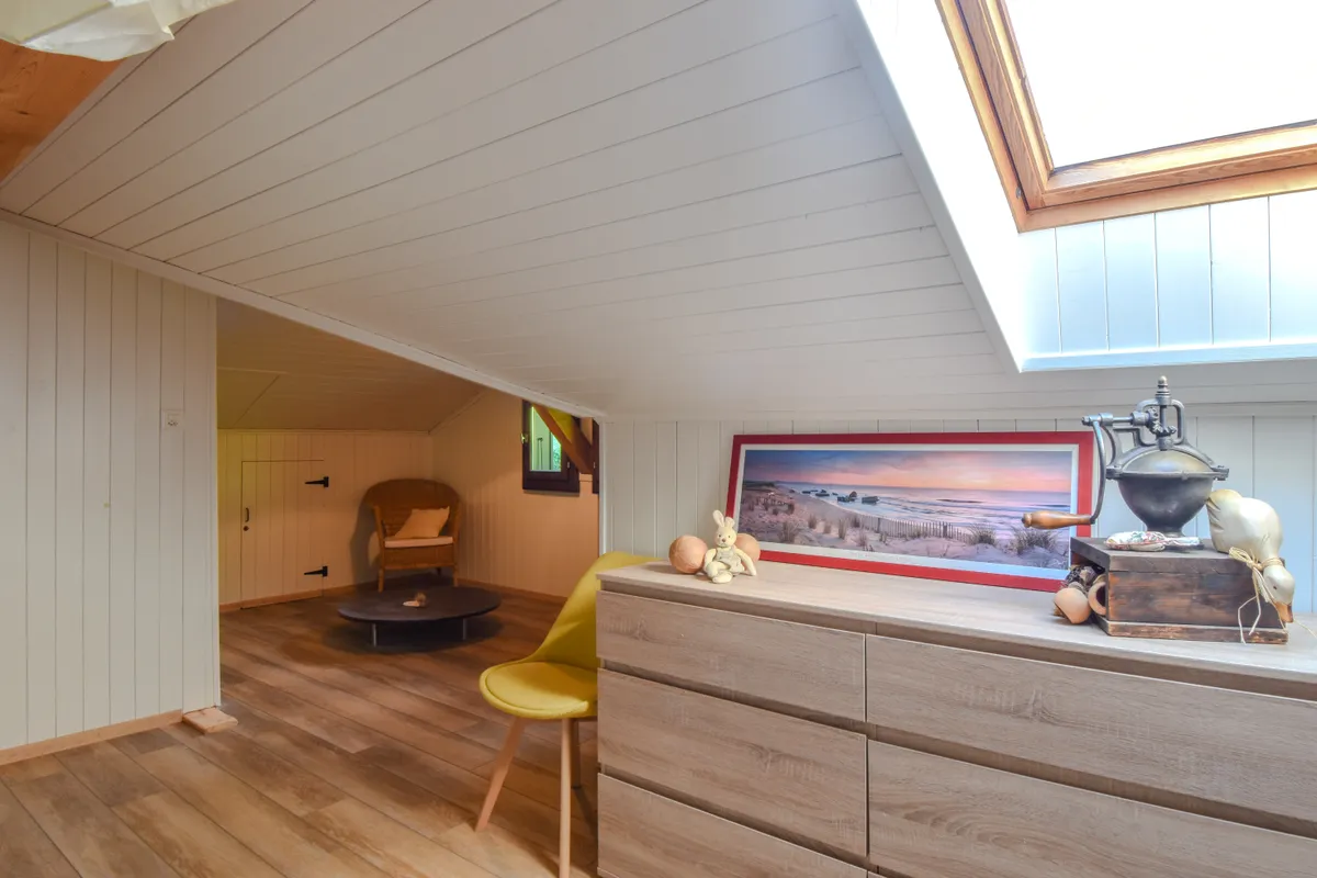 À l’étage, deux chambres modulables (bureau ou chambre d’enfant) accompagnées d’un WC séparé et de nombreux rangements sous les toits, offrent une flexibilité parfaite pour s’adapter à vos besoins.